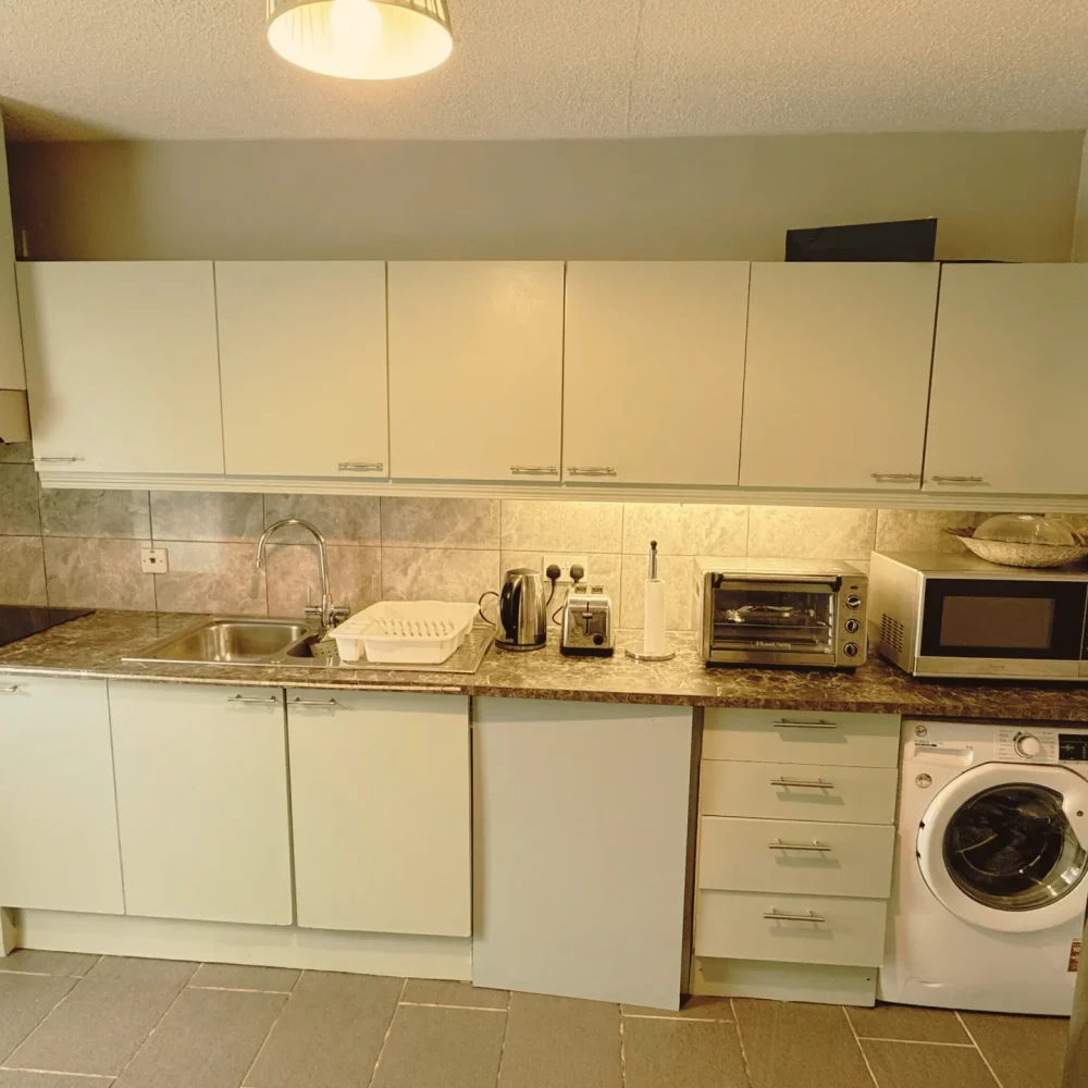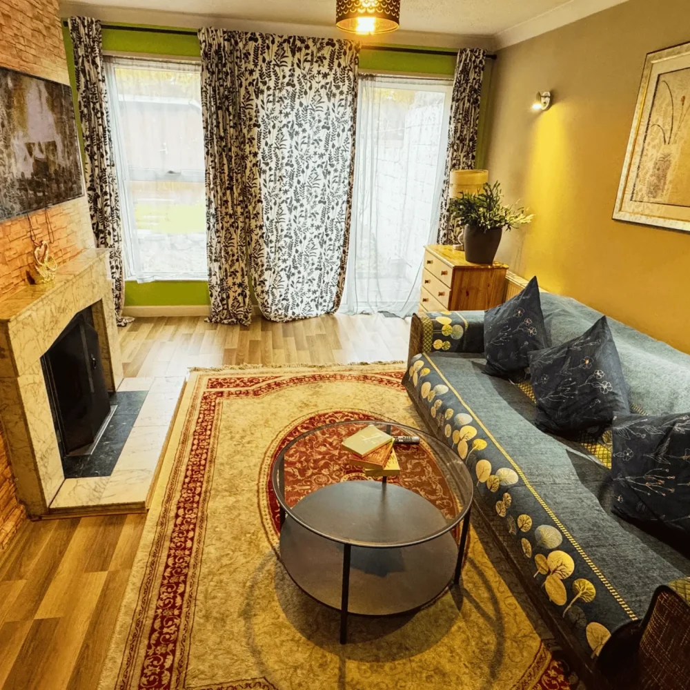 Comfortable Accommodation: Cosy 3 bed bungalow in Dublin offers a holiday home with three bedrooms and a living room. The ground-floor unit features a private entrance and garden views.